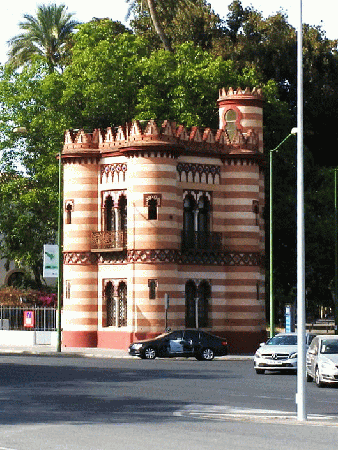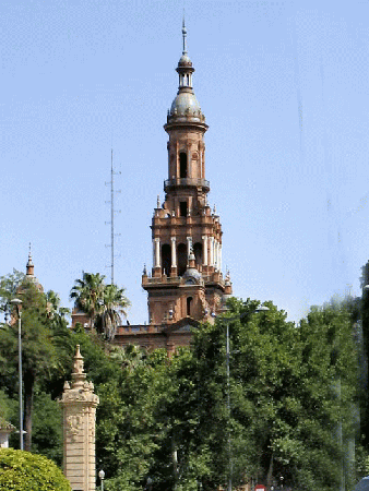 グアダルキビール川沿いにある黄金の塔まで行く予定であったが、JTBのイラストマップでは辿り着けなかった。その辺りには、灯台の様な塔があった。