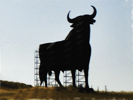 「オズボーンの雄牛」看板しかない様な荒地も多い。1956年にシェリー酒の醸造会社の宣伝のために設置され、役目を終えた看板である。ブランド名などをすべて塗り潰しして黒一色となり、オブジェとして残されている。 |