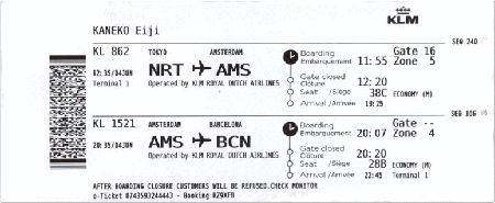 成田→アムステルダム→バルセロナ 搭乗券 | |