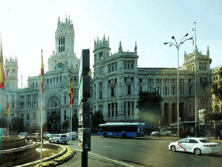 マドリード中心部から離れている宿泊ホテルからプラド美術館に向かう途中の車窓である。シベーレス広場はマドリード中心部にあ |